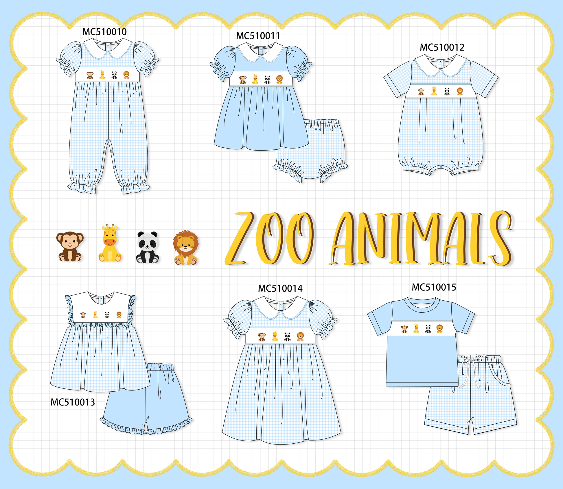 PO23 Blue Zoo Animal Embroidery Gingham Collection ETA March